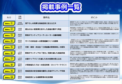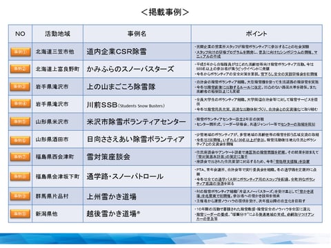 これまでの「雪処理の担い手の確保・育成のための克雪体制支援調査」で採択された団体の取組を年度別に紹介します。