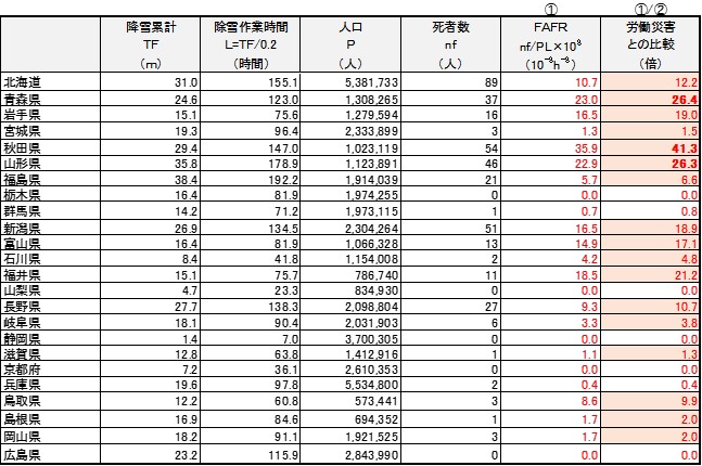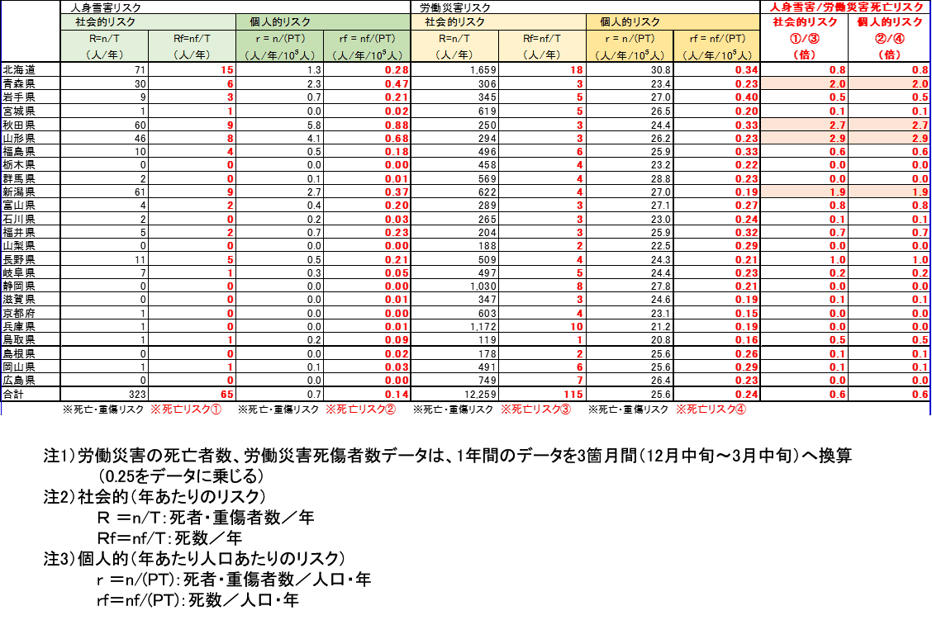 調査結果① 人身雪害リスクと労働災害リスクとの比較